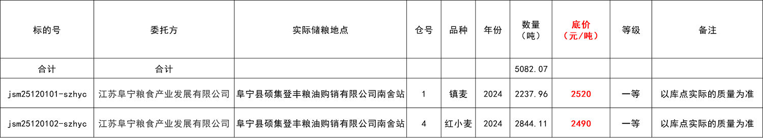 数量:5082.07吨(镇麦2237.96吨,红小麦2844.11吨),共2个标段
