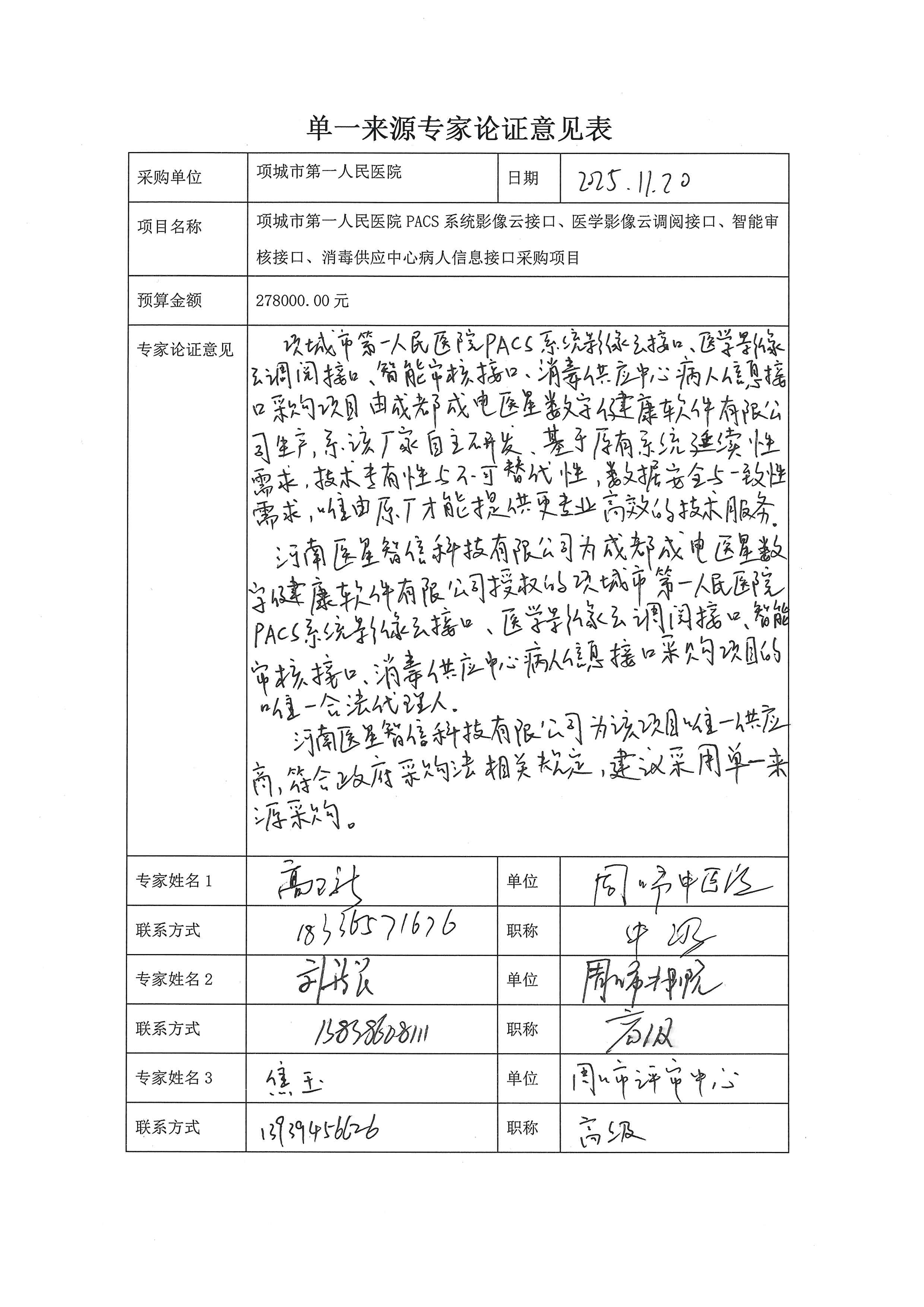 | 高卫新 | ******医院 | 中级 | 见专家论证意见附件 |