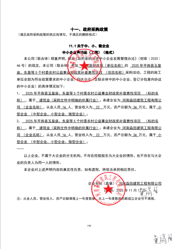 | 2、采购项目名称:2025年平舆县玉皇庙、东皇等5个村委农村公益事业财政奖补普惠性项目 | |||||||||||||||||||||||||||||||