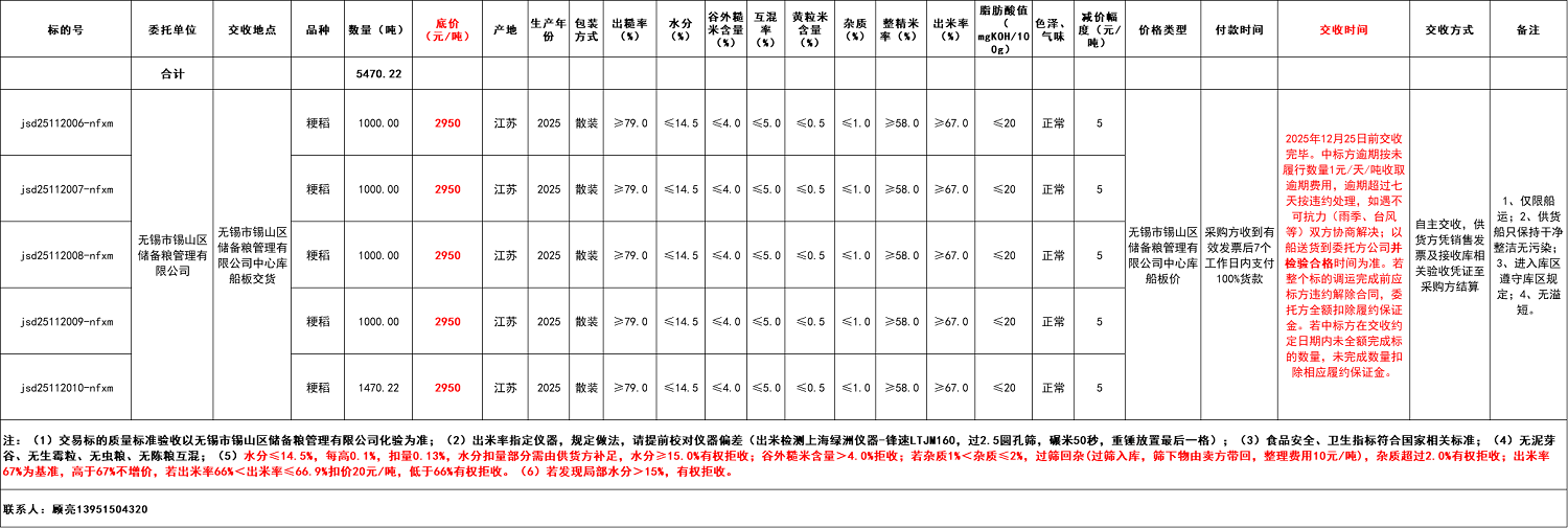 受******有限公司委托, 江苏粮油商品交易市场暨南方小麦分中心举办本次粳稻竞价采购交易活动。具体事宜公告如下: