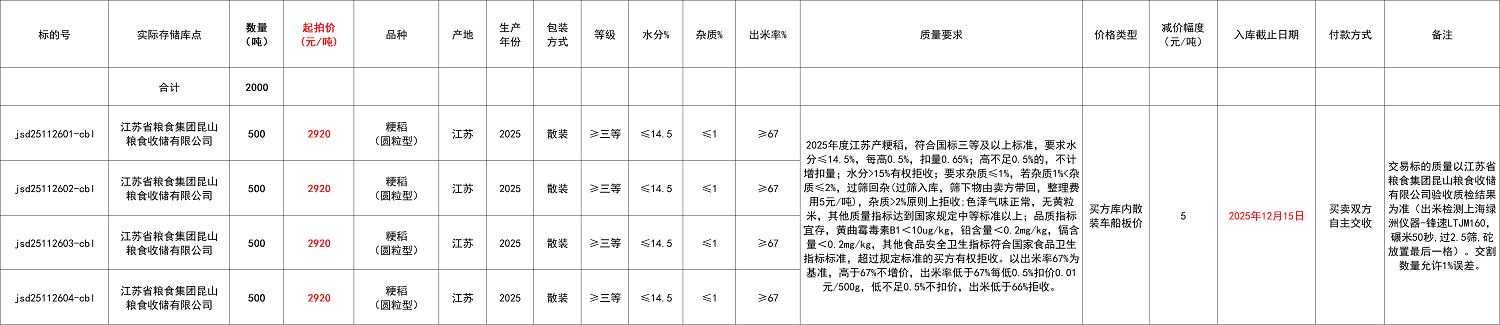 1.《江苏地方粮食竞价交易细则》、《交易清单》等交易文书为本公告的组成部分,交易前应一并查看,一旦报名视作认同相关内容并须切实履行。