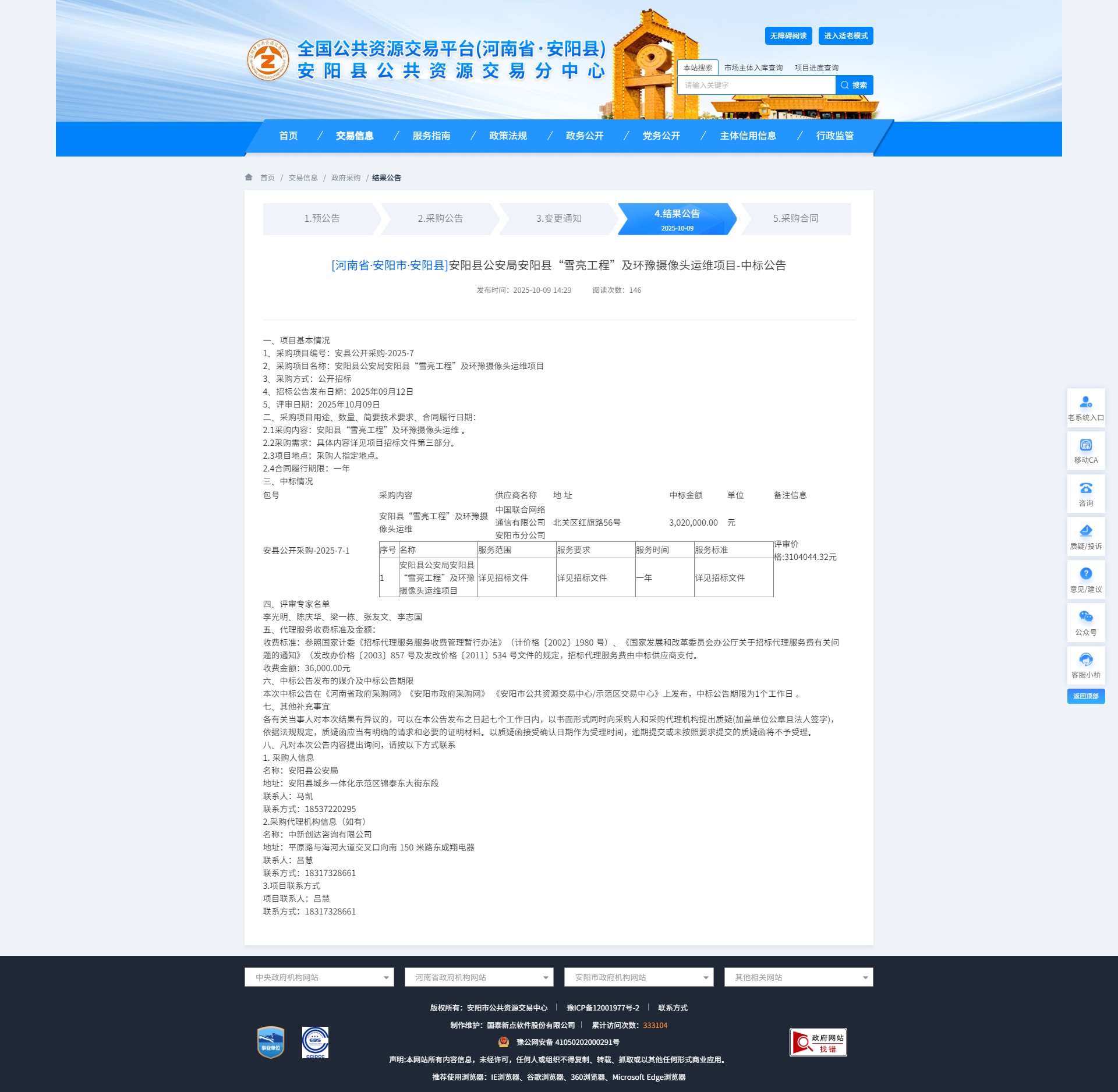| 1 | 硬件运维服务 | 雪亮工程及环豫摄像头运维 | 安阳县“雪亮工程”及环豫摄像头运维 | 1年 | 合格 |
