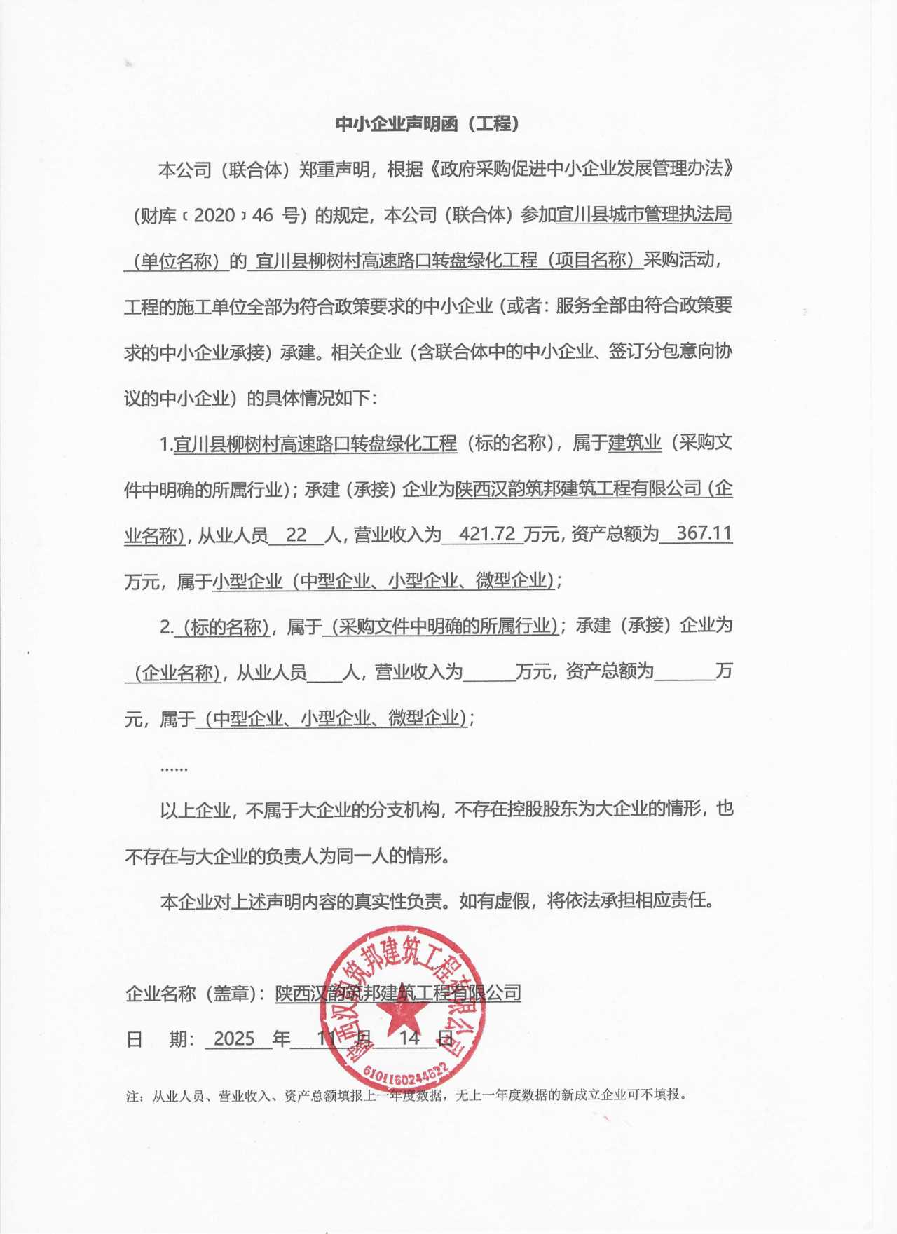 ******城市管理执法局宜川县柳树村高速路口转盘绿化工程中标(成交)明细.pdf 2.磋商文件.pdf 工程量清单.pdf 中小企业声明函.jpg