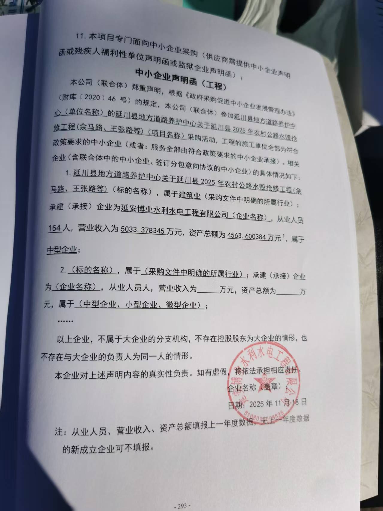 延川县地方道路养护中心延川县2025年农村公路水毁抢修工程(佘马路、王张路等)中标(成交)明细.pdf 中小企业声明函-佘马路、王张路.jpg 磋商文件.docx