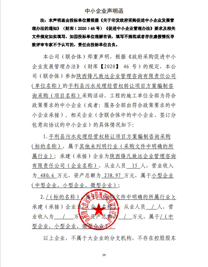 ******建设局(本级)平利县污水处理经营权转让项目方案编制咨询采购中标(成交)明细.pdf 中小企业声明函.png