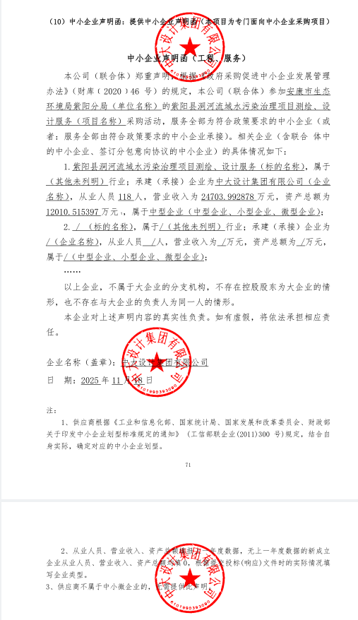 安康市生态环境局紫阳分局紫阳县洞河流域水污染治理项目测绘、设计服务中标(成交)明细.pdf 定稿紫阳县洞河流域水污染治理项目测绘、设计服务.pdf 中小企业声明函.png